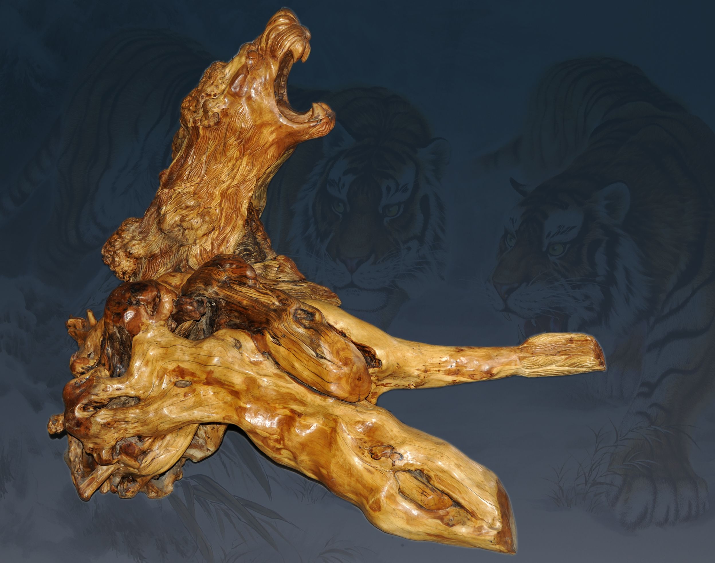 根雕作品-《国宝·东方醒狮》