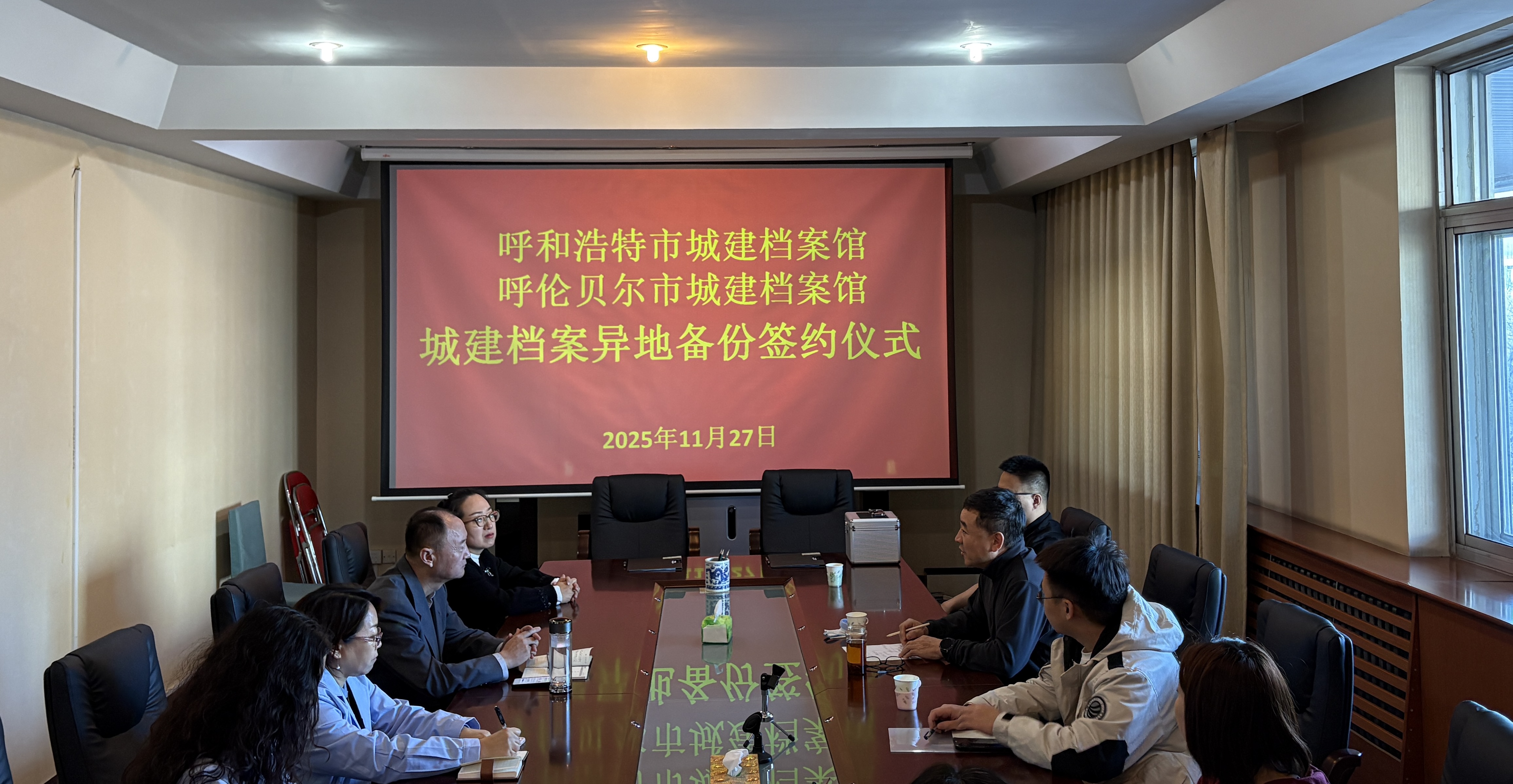 为进一步加强档案数据安全管理,确保档案信息资源的长期保存与有效利用,11月27日,呼和浩特市城建档案馆与呼伦贝尔市城建档案馆举行城建档案异地备份签约仪式。此举标志着两地城建档案事业协同发展迈出了实质性一步,为珍贵城市记忆上了“双保险”。