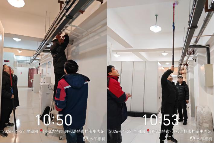 本次检查由馆领导带队,物业消防安全员及消防维保单位共同组成检查组,严格按照“全覆盖、零容忍、重实效”的原则,对档案史志馆本馆,城建档案馆及国有企业退休人员社会化管理人事档案保管中心进行联合巡查检查。检查组深入档案库房、查阅大厅、中心机房、消防控制室及配电间等重点区域,对档案实体保管环境、消防设施设备、电气线路安全、安防监控系统运行以及日常安全管理制度落实情况等进行了逐项排查。对检查中发现的部分细节问题,现场明确整改责任人和整改期限,要求立行立改,确保整改到位。