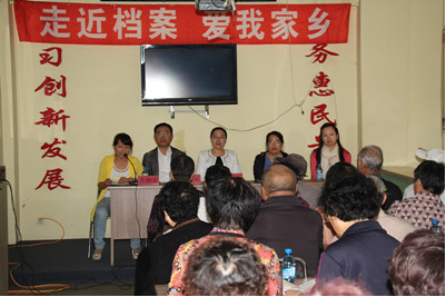 国际档案日当天,通辽市、科尔沁区档案局馆在新兴社区开展“走进档案,爱我家乡”主题活动。图为工作人员向社区居民展示档案利用效益实例。