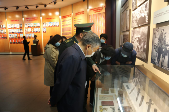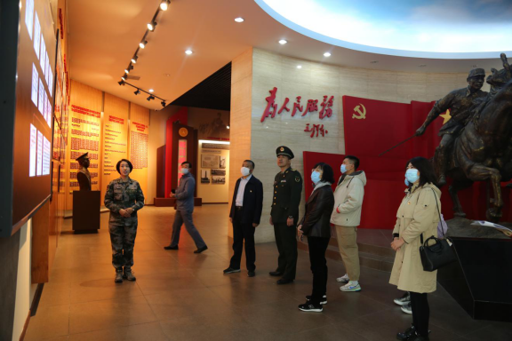在内蒙古军区军史馆内,全体人员在讲解员的带领下,详细了解内蒙古军区从抗日战争时期、解放战争时期、建国之初、社会主义建设时期、改革开放以来等各个阶段的军史。一幅幅图片、一张张图表、一件件实物生动地展现了革命先烈在艰苦恶劣的环境中坚定信念、不怕牺牲、英勇顽强、艰苦奋斗的革命历史。