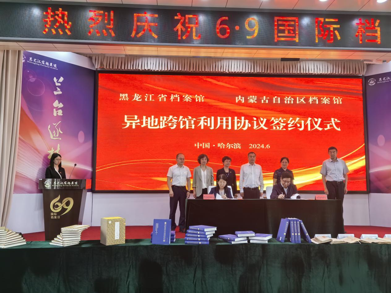 会上,自治区档案馆馆长李淳仁与黑龙江省档案馆馆长张军勇共同签署了《民生档案异地跨馆利用协议》,正式搭建两省区涉及婚姻、知青、学籍、职称等民生方面档案资源互查共享便捷通道。