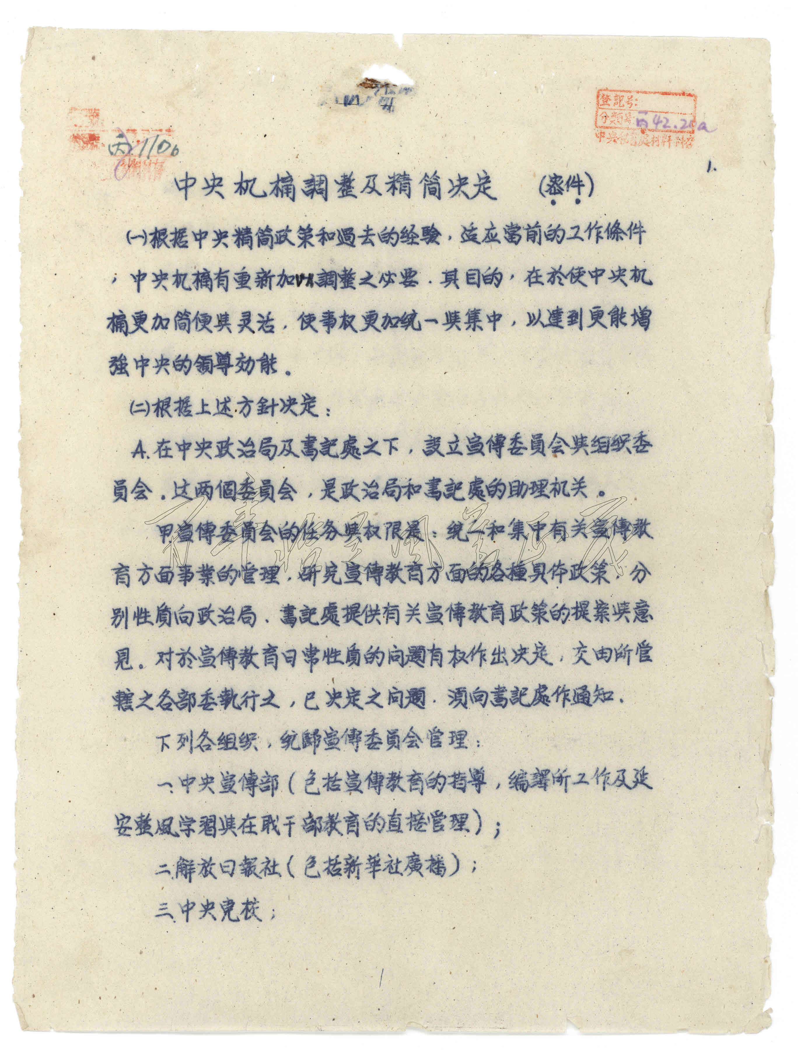 08 1943年3月中央政治局会议作出的《中央机构调整及精简决定》