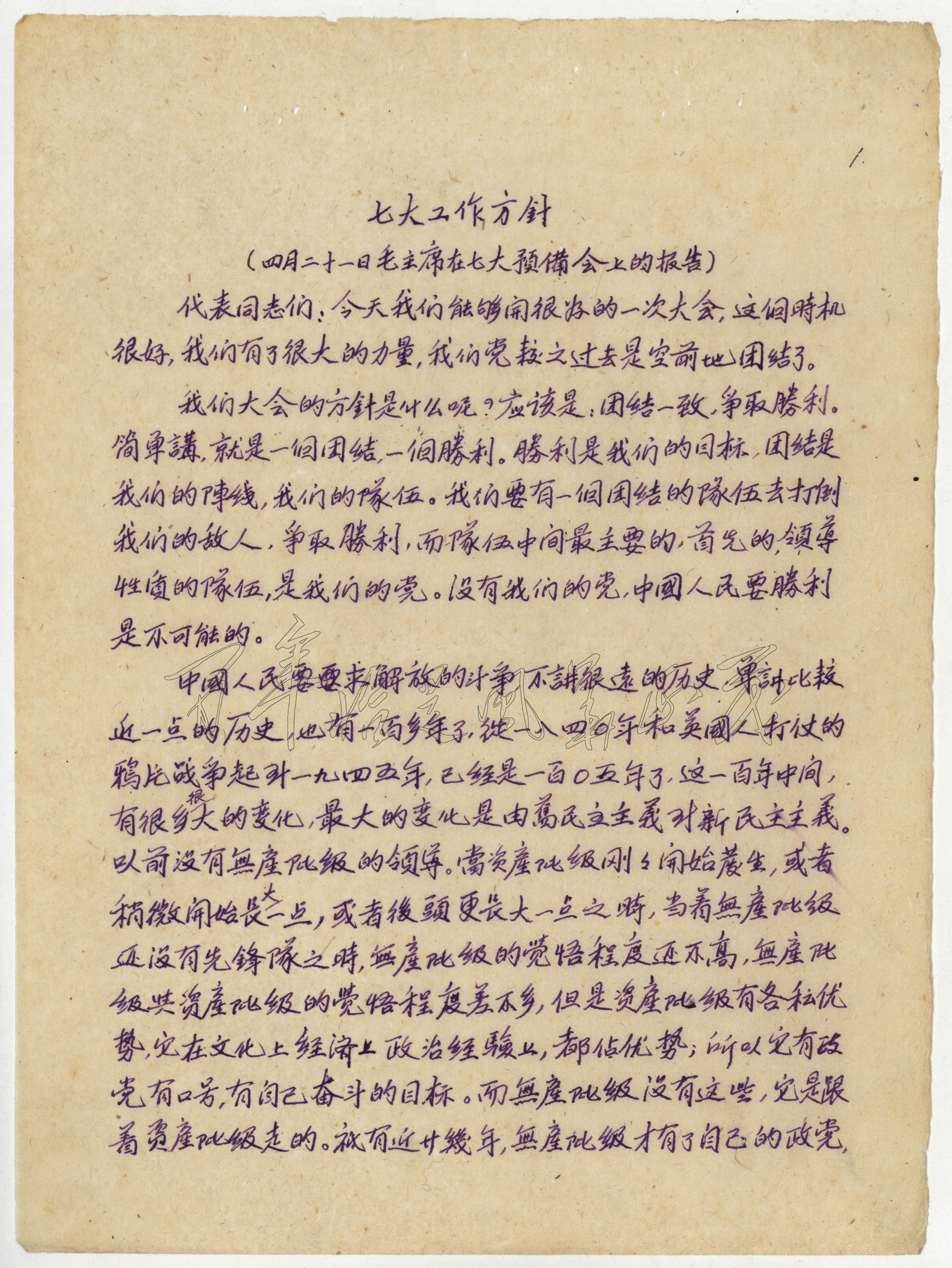 09 1945年4月毛泽东在党的七大预备会议上作《中国共产党第七次全国代表大会工作方针》的报告