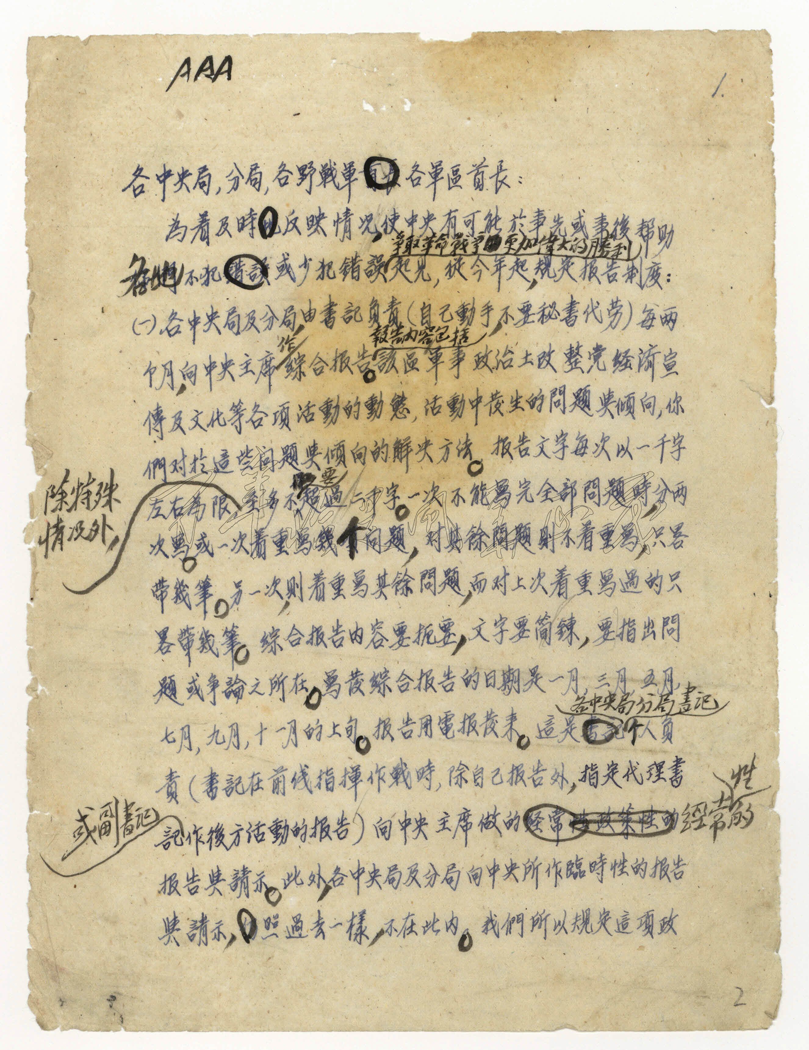 10-2 1948年中共中央关于建立报告制度的补充指示