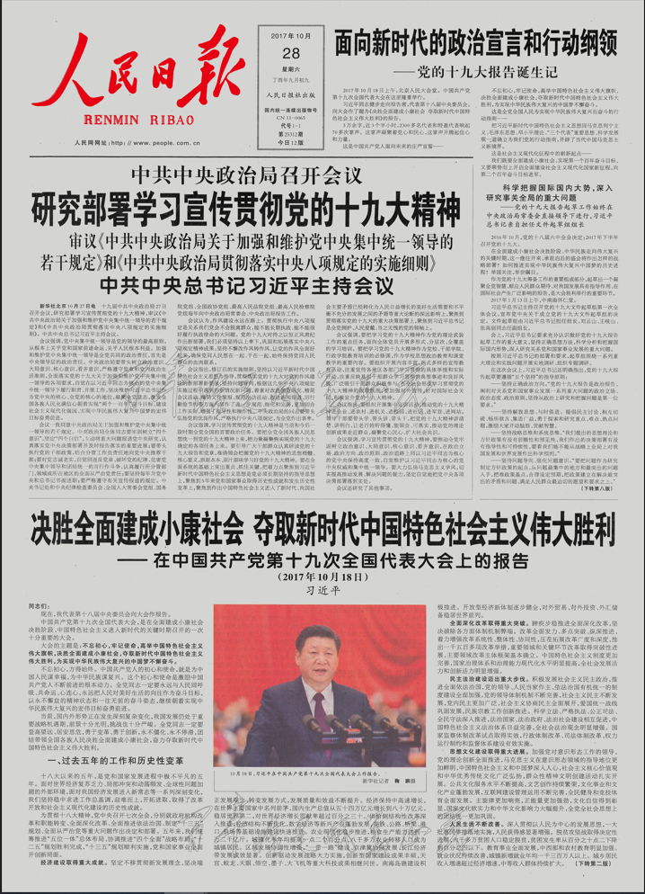 16-1 人民日报 学习贯彻十九大精神