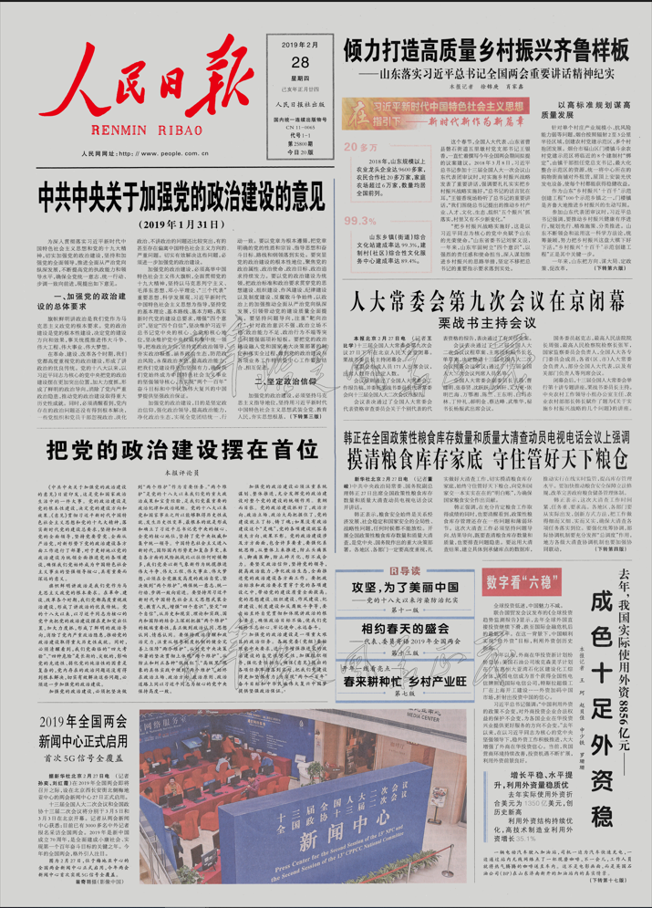 16-2 人民日报 中共中央关于加强党的政治建设的意见