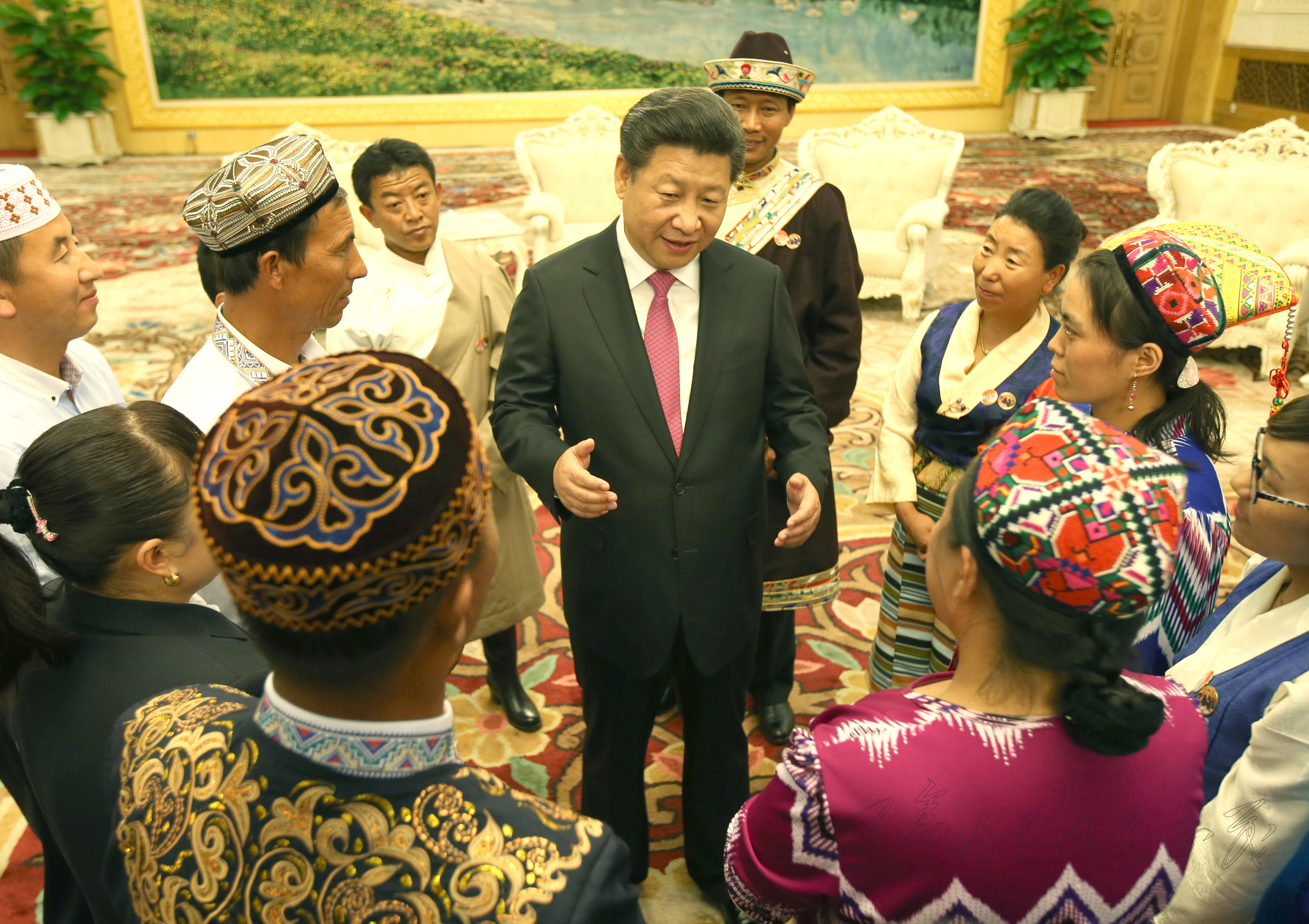 19-4 图片:习近平总书记在人民大会堂亲切会见来自5个自治区的基层民族团结优秀代表们