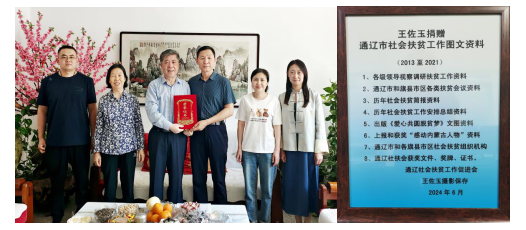 将通辽市政协原主席王佐玉同志捐赠的大批图书资料、画册、珍贵照片征集进馆,并向捐赠者颁发荣誉证书,选取部分珍贵档案向社会进行展示。