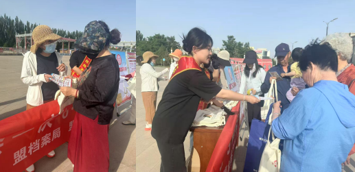第十八个“6·9”国际档案日来临之际,盟档案局、档案史志馆联合阿拉善海关、盟住建局、盟信访局等机关事业单位,于6月9日在阿左旗新世纪广场开展“6·9”国际档案日集中宣传活动。活动紧扣“请听档案说”年度主题,旨在让沉睡档案“活”起来、“走”出来,提升公众对档案价值的认知。