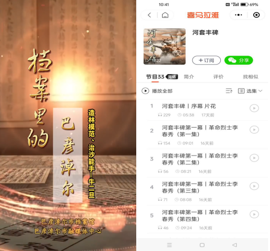 市委办公室(档案局)、市委宣传部、市委党史研究室共同制作了32集《河套丰碑》广播剧,该剧以1921年至1951年间巴彦淖尔大地上牺牲的9位革命烈士为原型,让英勇事迹穿越时空,生动再现。6月9日当天有关单位在中共临河党支部旧址隆重举行宣传发布会,截至目前该剧已在“喜马拉雅”、“云听”、“懒人听书”等APP上线。同时,市档案馆与市融媒体中心联合打造了“档案里的巴彦淖尔”系列节目,围绕反映巴彦淖尔发展历程中的重要事件和人物,推出多个档案故事主题篇章,在“掌上巴彦淖尔”推送。